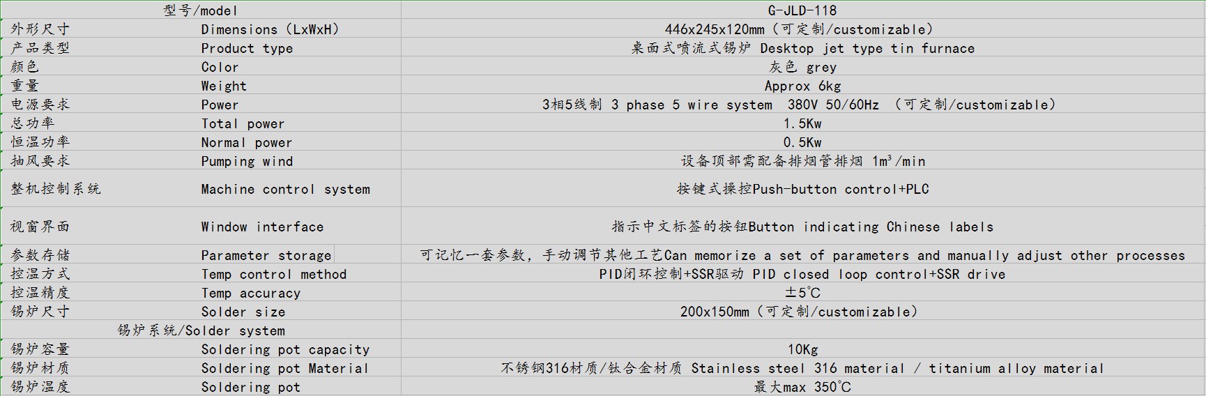 ● 可定制錫爐尺寸,滿足各種產品的工藝要求