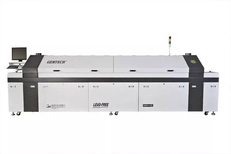 最后,將溫度冷卻到焊膏的凝固點(diǎn)溫度以下,使焊點(diǎn)固化。冷卻速度越快,焊接效果越好。如果冷卻速度過慢,會(huì)產(chǎn)生過量的共晶金屬化合物,焊點(diǎn)處容易出現(xiàn)大晶粒組織,降低焊點(diǎn)的強(qiáng)度。一般冷卻區(qū)的冷卻速度在4℃/S左右,會(huì)冷卻到75℃。