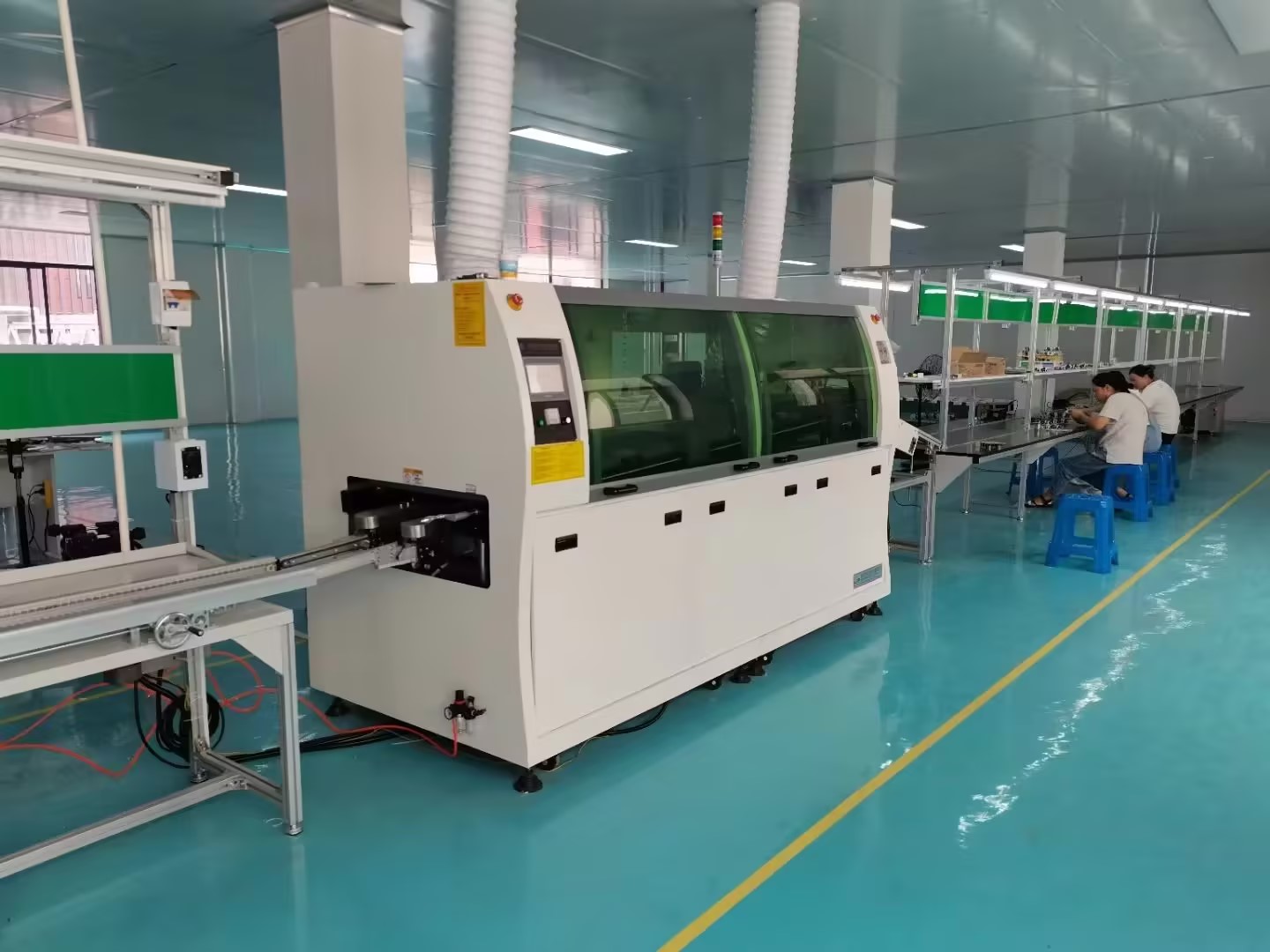 4. 焊接過程:啟動焊接設備,使焊錫波流動,并將焊接部件沿著焊錫波的方向移動。確保焊接部件在焊錫波中停留的時間適當,以確保良好的焊接質量。